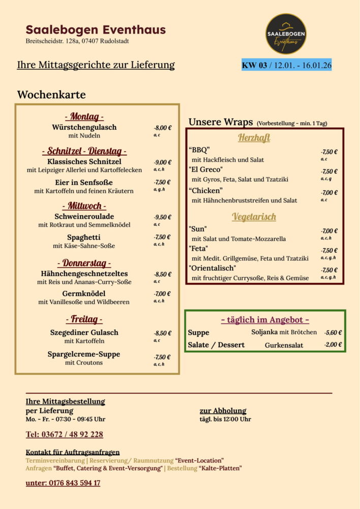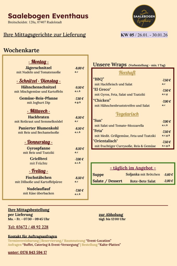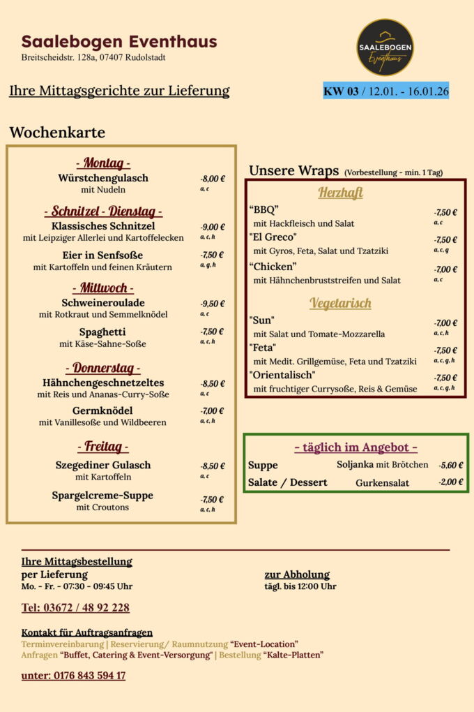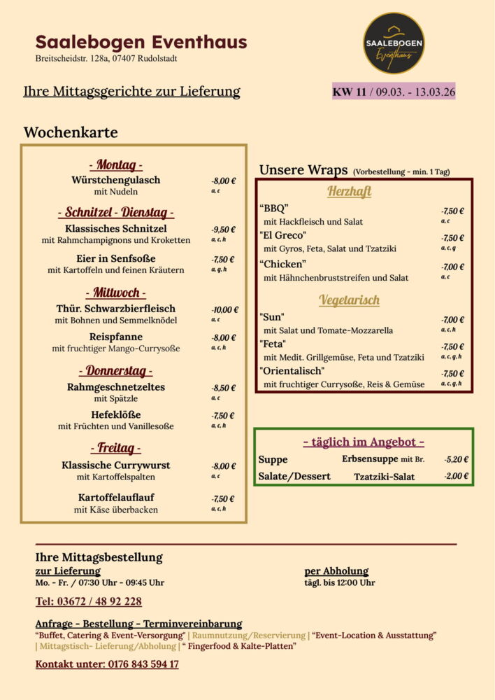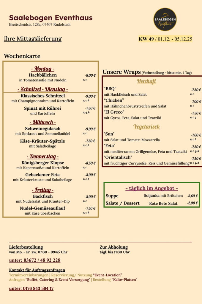 Wir wünschen Ihnen eine schöne Woche und recht guten AppetitLieferung / Abholung