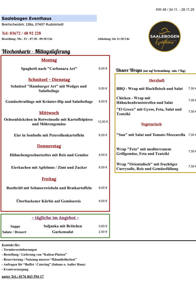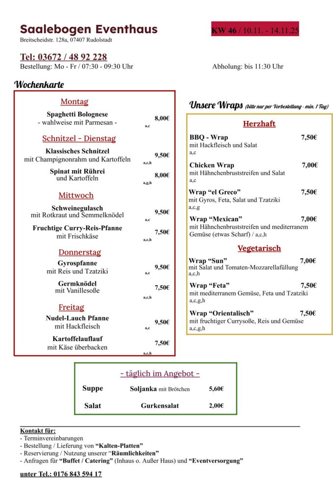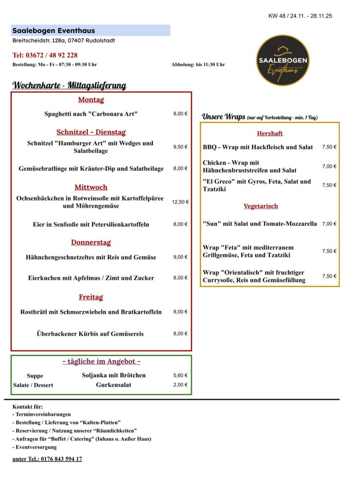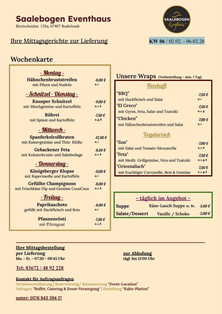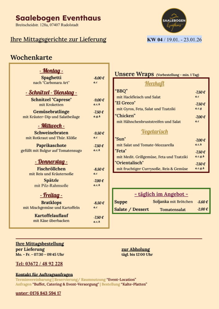 Wir wünschen Ihnen eine schöne Woche und recht guten AppetitLieferung / Abholung