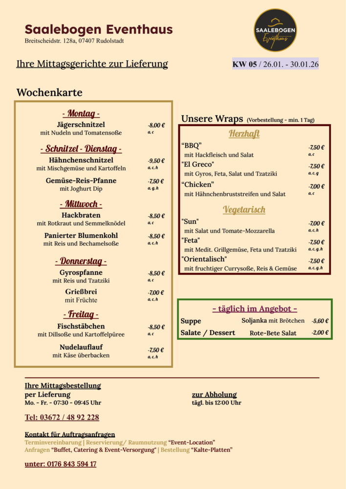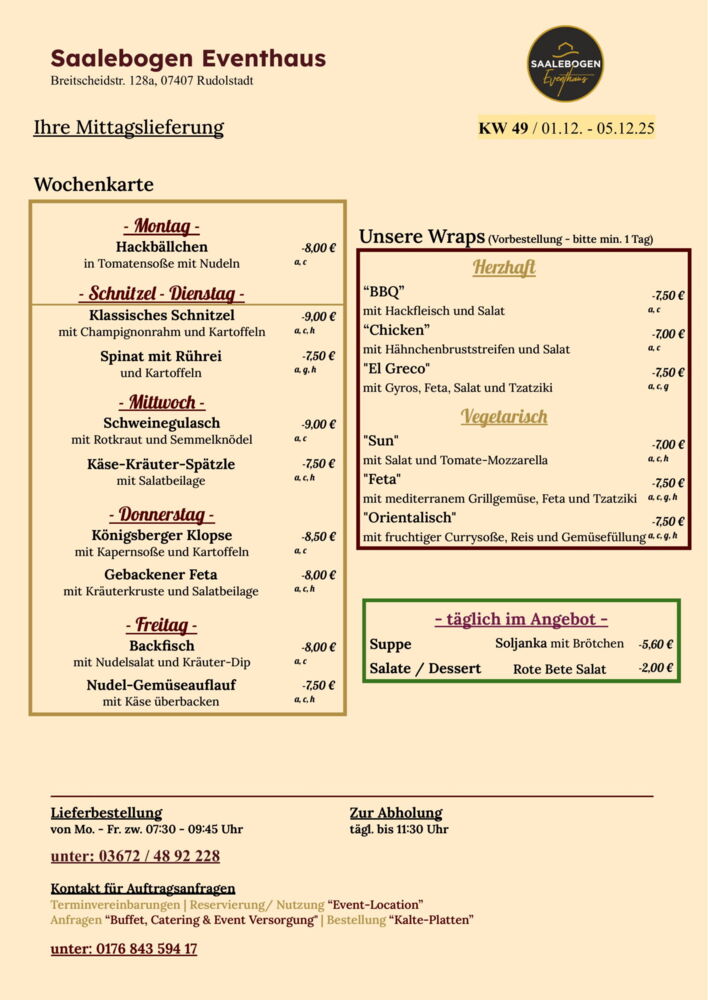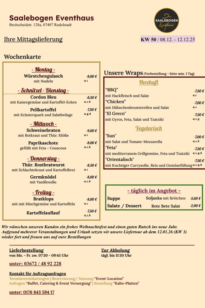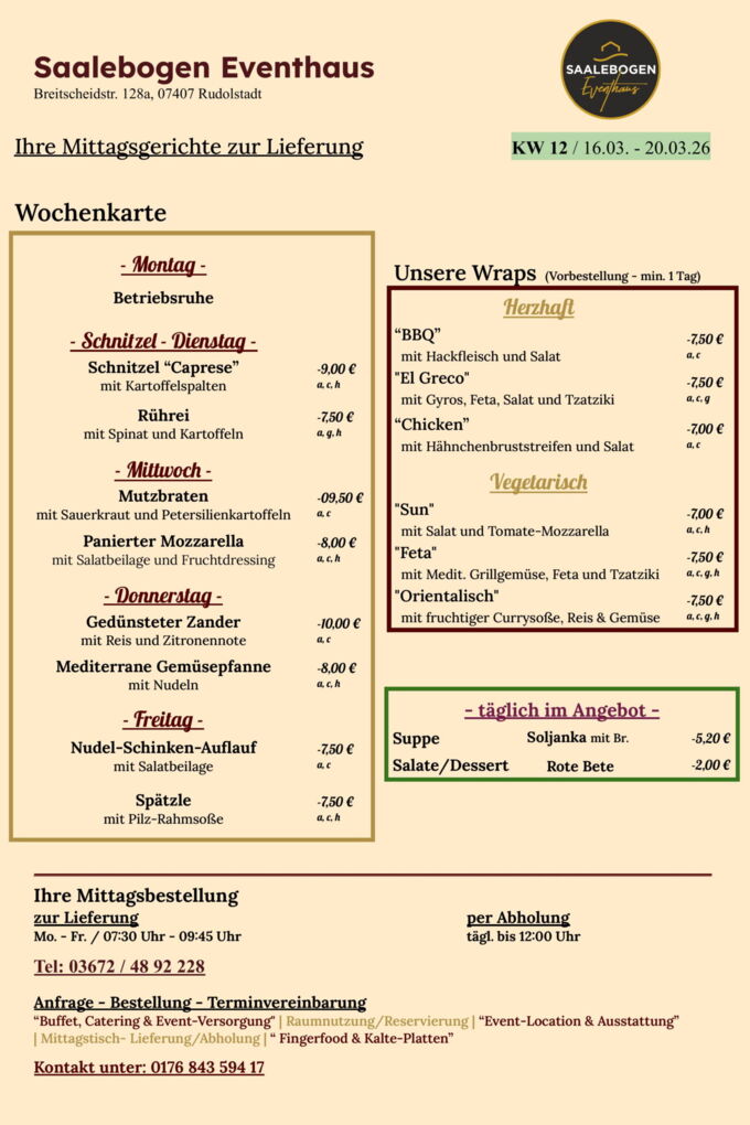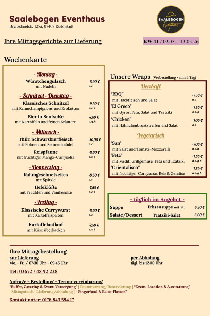 Wir wünschen Ihnen eine schöne Woche und recht guten AppetitLieferung / Abholung