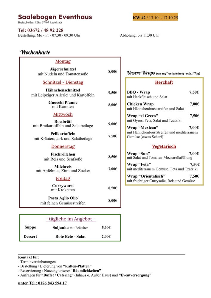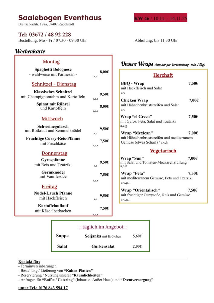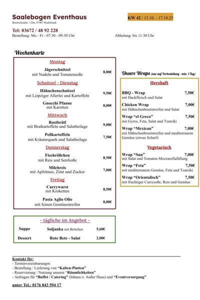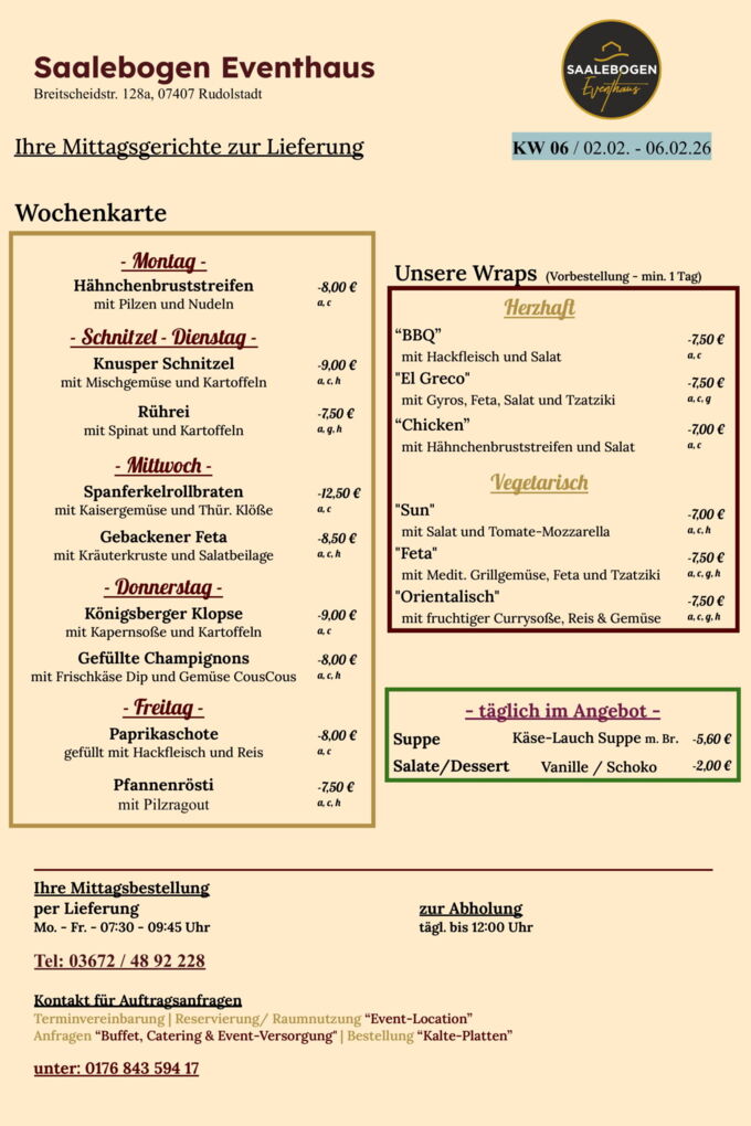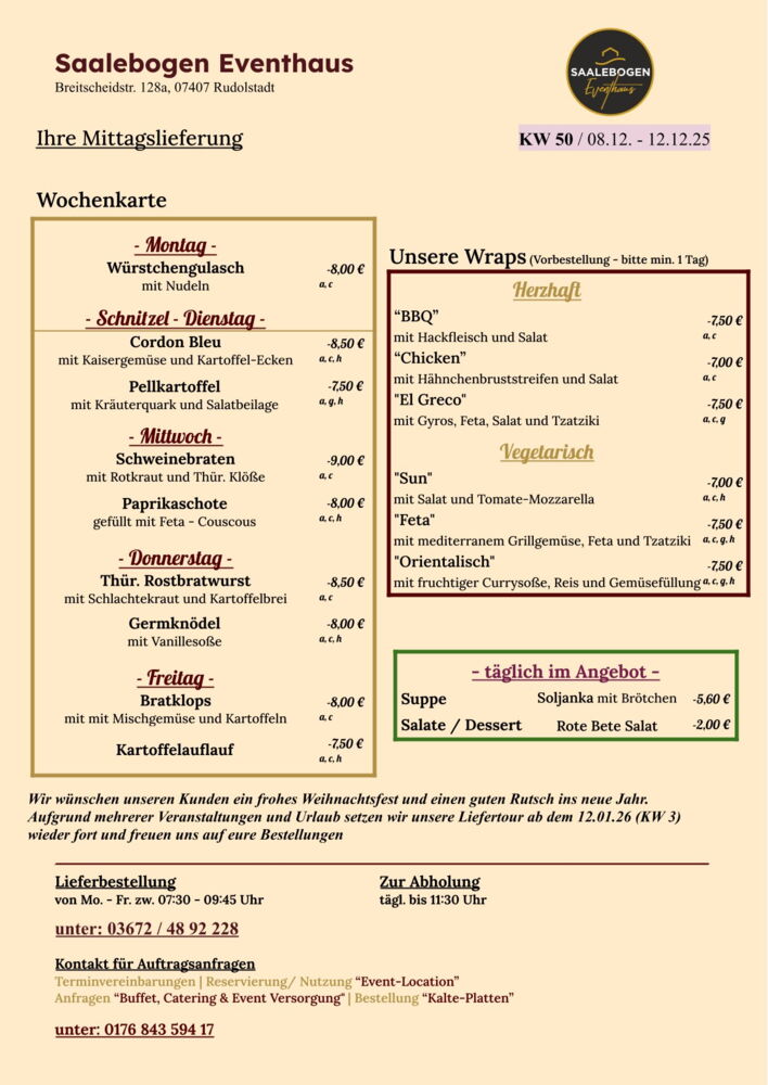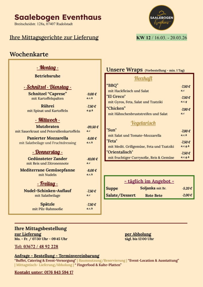 Wir wünschen Ihnen eine schöne Woche und recht guten AppetitLieferung / Abholung